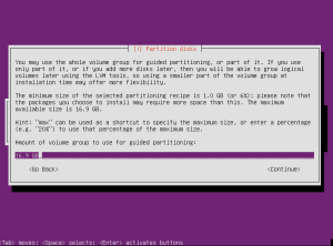 Select Continue to accept the default amount of volume to use.