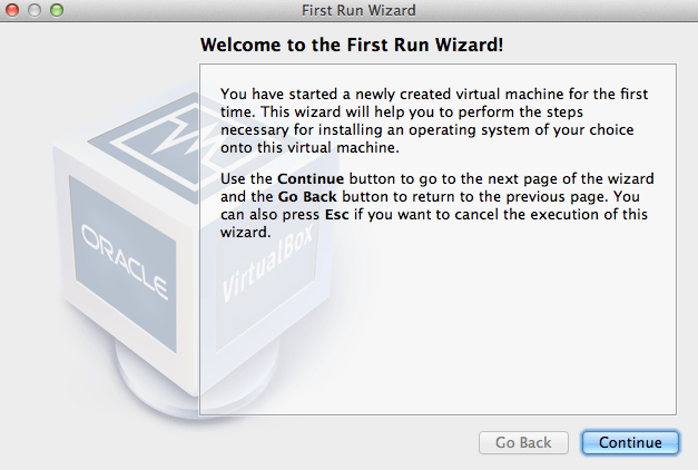 This will launch the First Run Wizard. Click Continue.