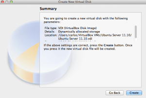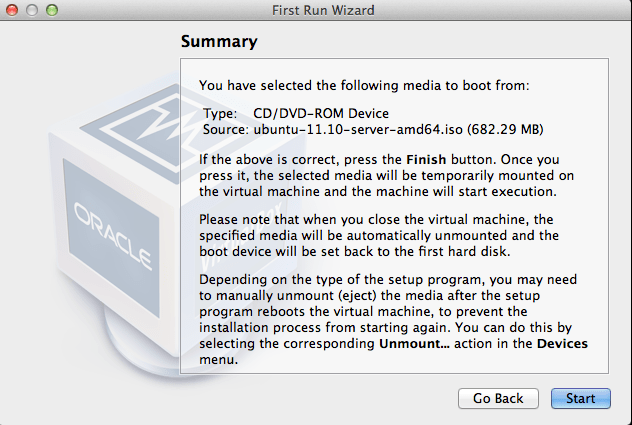 The next steps are the same regardless if installing Ubuntu Server on a VM or to bare metal: Installing Ubuntu Server Oneiric Ocelot.