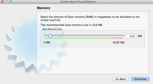 For memory will go with the default 512 MB which will be more than enough for our purposes. Click Continue.